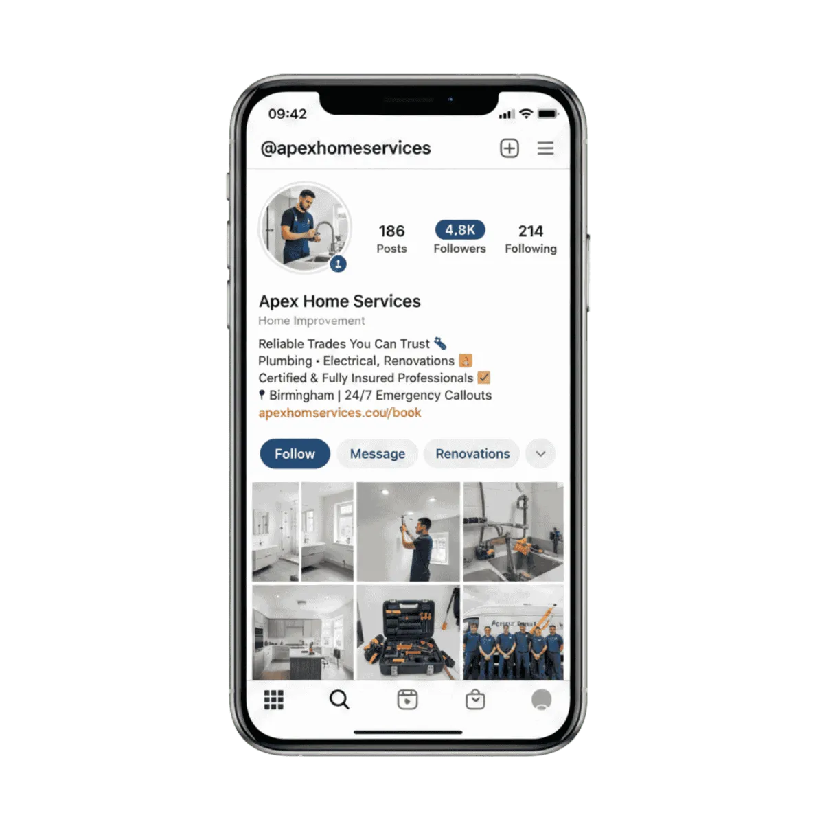 Social media helps trades businesses increase visibility when customers search for local services. By showcasing completed jobs, services and reviews, businesses can turn views into enquiries and attract more local customers.