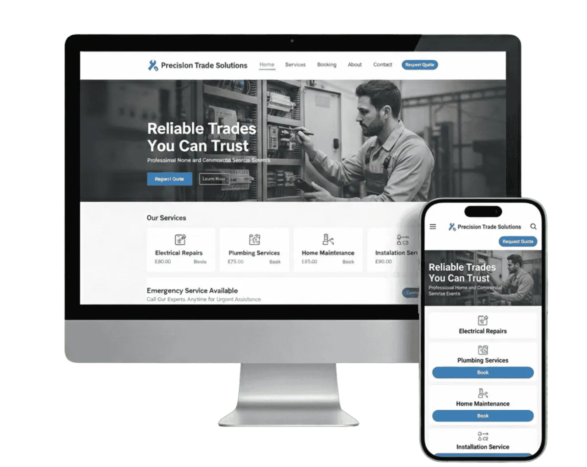 Trades websites help convert visitors into quote requests, enquiries and booked jobs while capturing customer details. This allows businesses to follow up with customers and build a database that drives repeat work.