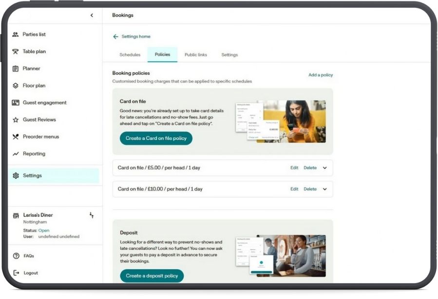 Automated SMS reminders, flexible deposits, and card-on-file reduce missed bookings, while self-service amendments and cancellations cut admin and free up tables. No-show tracking helps stop repeat offenders and protect revenue.