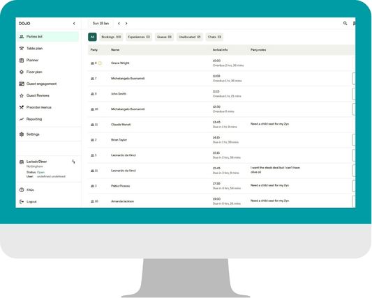 Clear performance reporting including covers, party size, time slots and no-shows at a glance (and more)